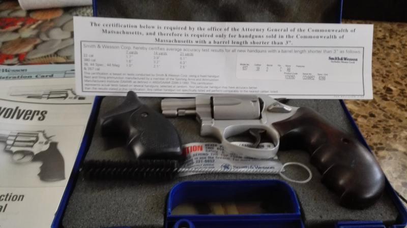 Buenos días, tengo un revolver S&W, modelo 637, calibre 38 de 3" a la venta.