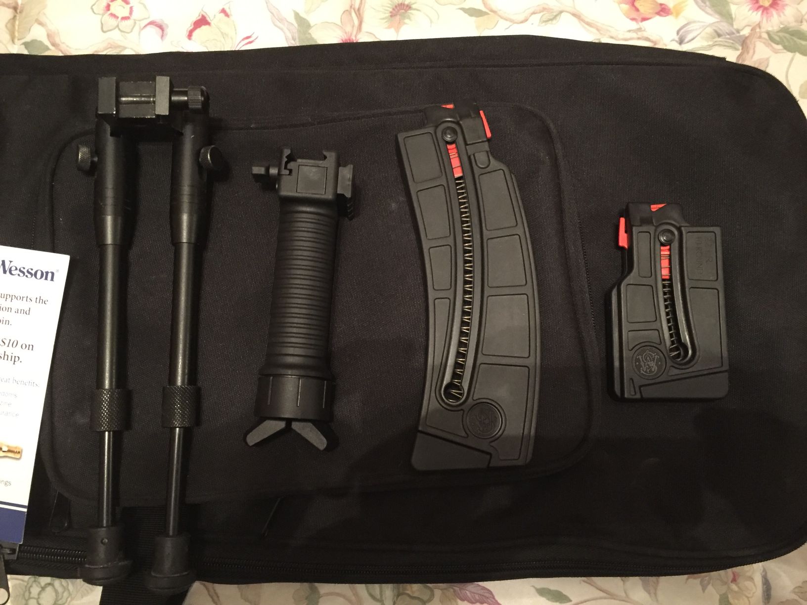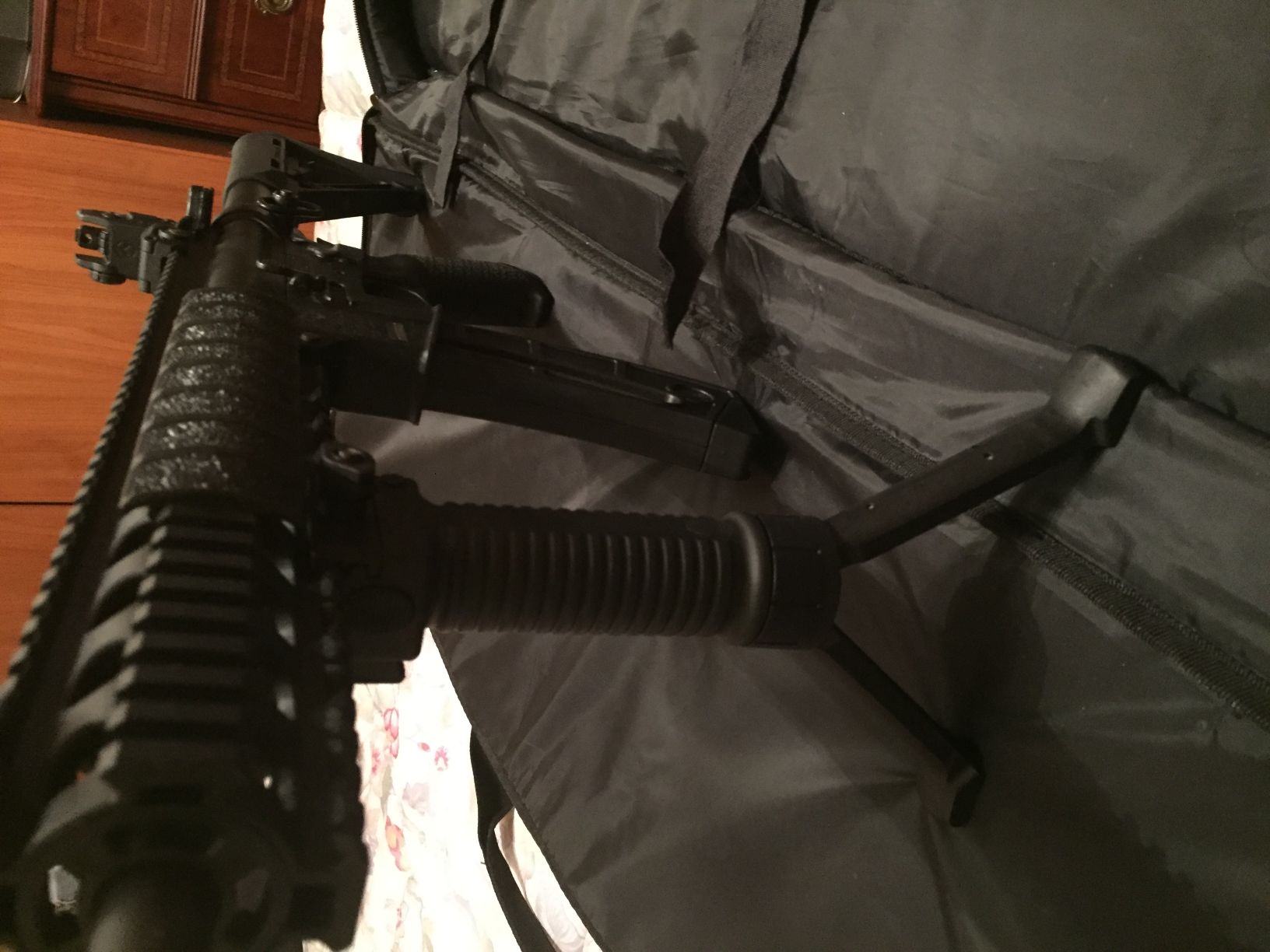 con su bolsa de transporte sus papeles los dos cargadores uno largo mas el corto mas los dos bipotes .