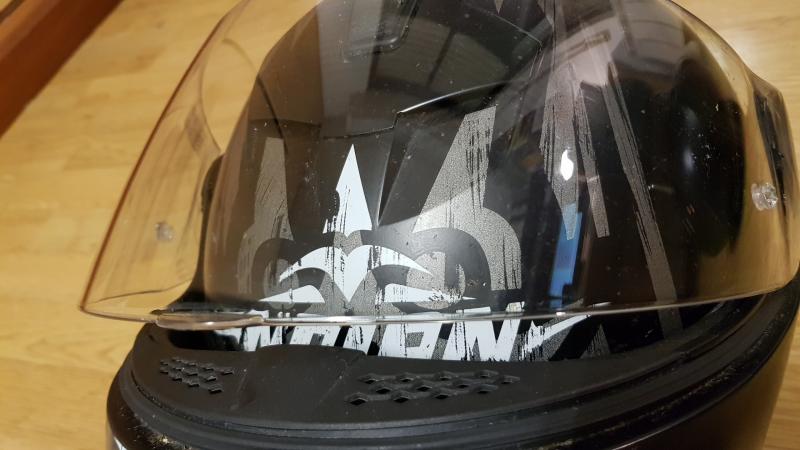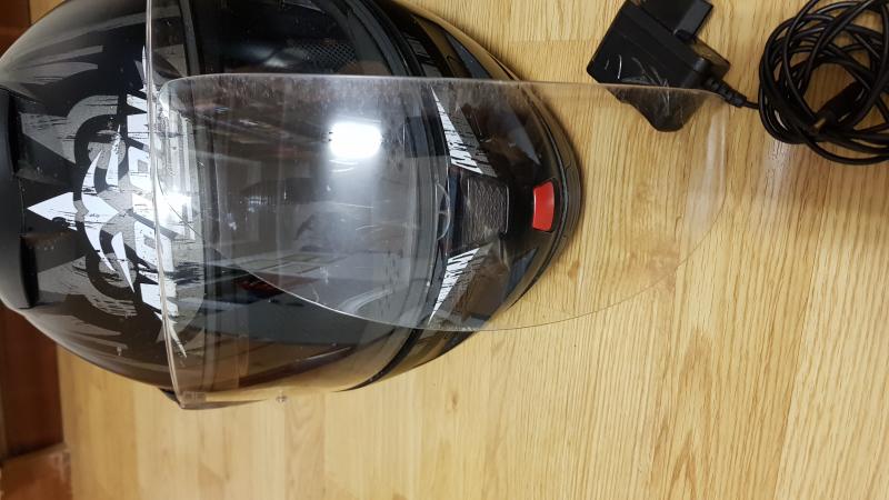 1. N103. Negro con detalles tribales en gris. Intercomunicador BT N-com con su cargador, funda solar interior, pinlock (pantalla anti-vaho). 60€