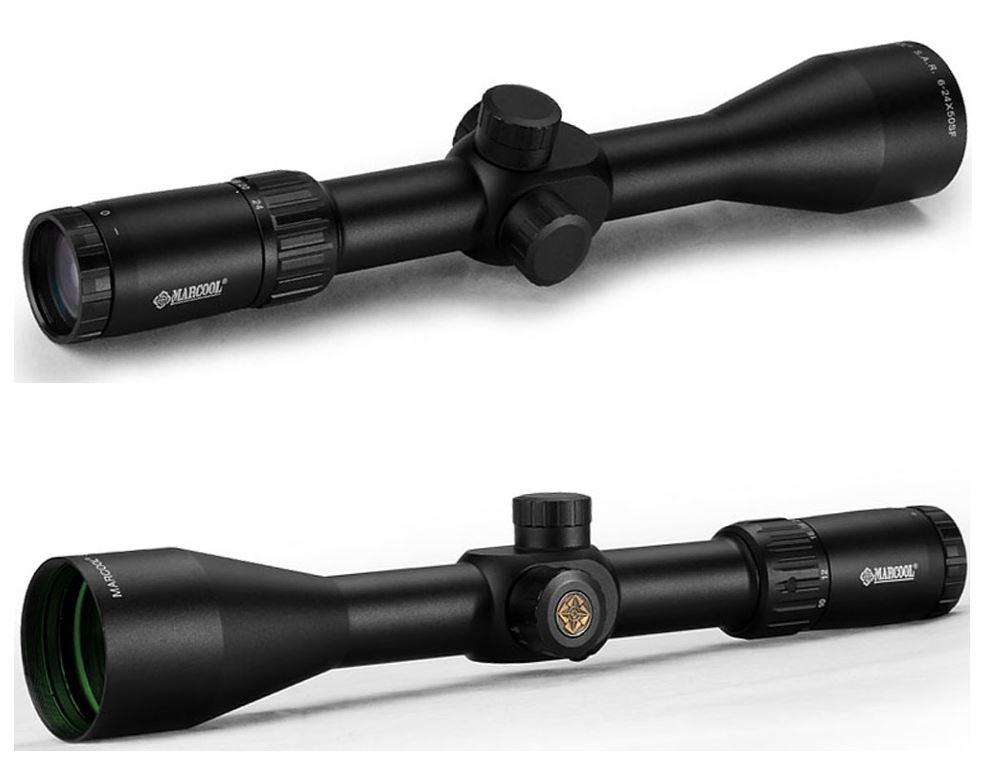 Yo personalmente, en una Diana 56, la misma que la 54, pero mas cara todavía, con retroceso incluido, y 20 julios, tengo montado un Marcool FFP 6-24X50, y encantado de la vida con el, se ve, de perlas, por 195 €, sin retícula iluminada ni gaitas innecesarias...... :D