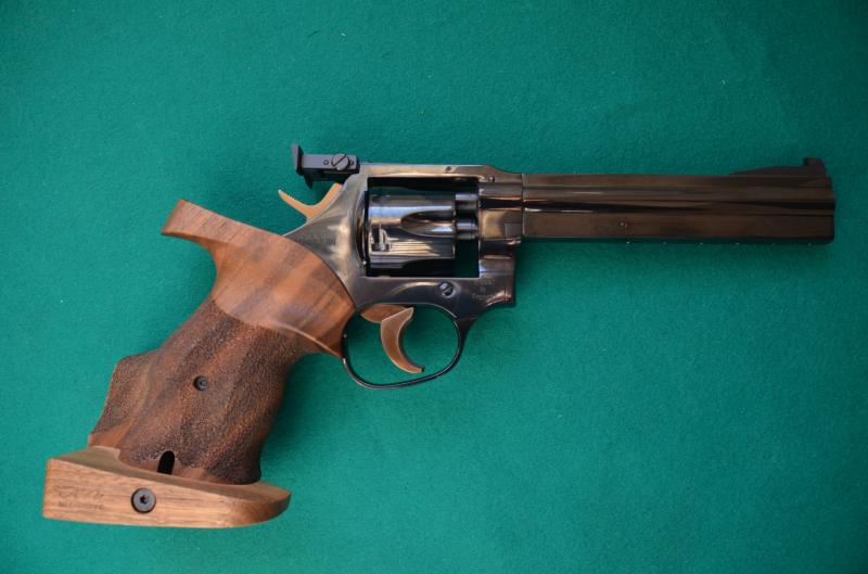 Está en estado impecable, fue un regalo que no he usado por dedicarme a otras modalidades de tiro. Va en su estuche original, con cacha original y otra de competición de la marca Nill y lleva una zapata de gatillo también original de la marca.