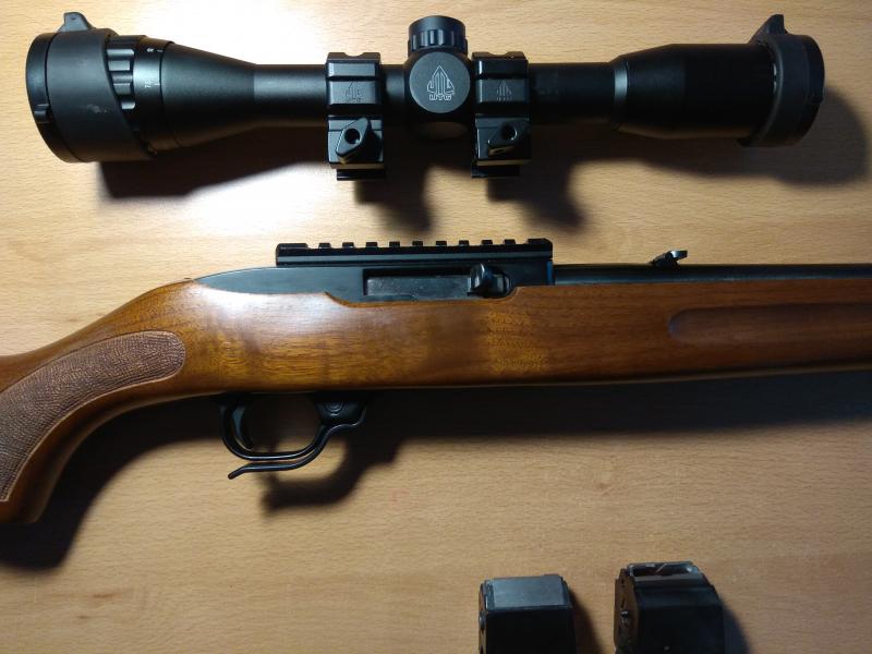 Hola, vendo Ruger 10/22 modelo Sporter. Lleva, extensor de palanca de cargador, montura de visor, visor modelo UTG Leapers 4x32 Mil-Dot y dos cargadores de 10. Llevará unos 600 disparos.