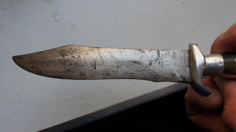 Hola me gustaría saber si alguien reconoce el logo de este cuchillo que encontré en el desván de casa solo se ve parte y que me podeis decir de el .ante todo gracias