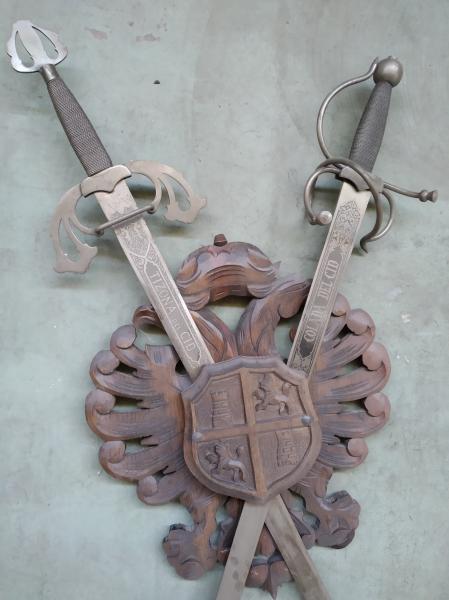 Vendo metopa con las reproducciones de las espadas del Cid, la Tizona y la Colada en acero de calidad.