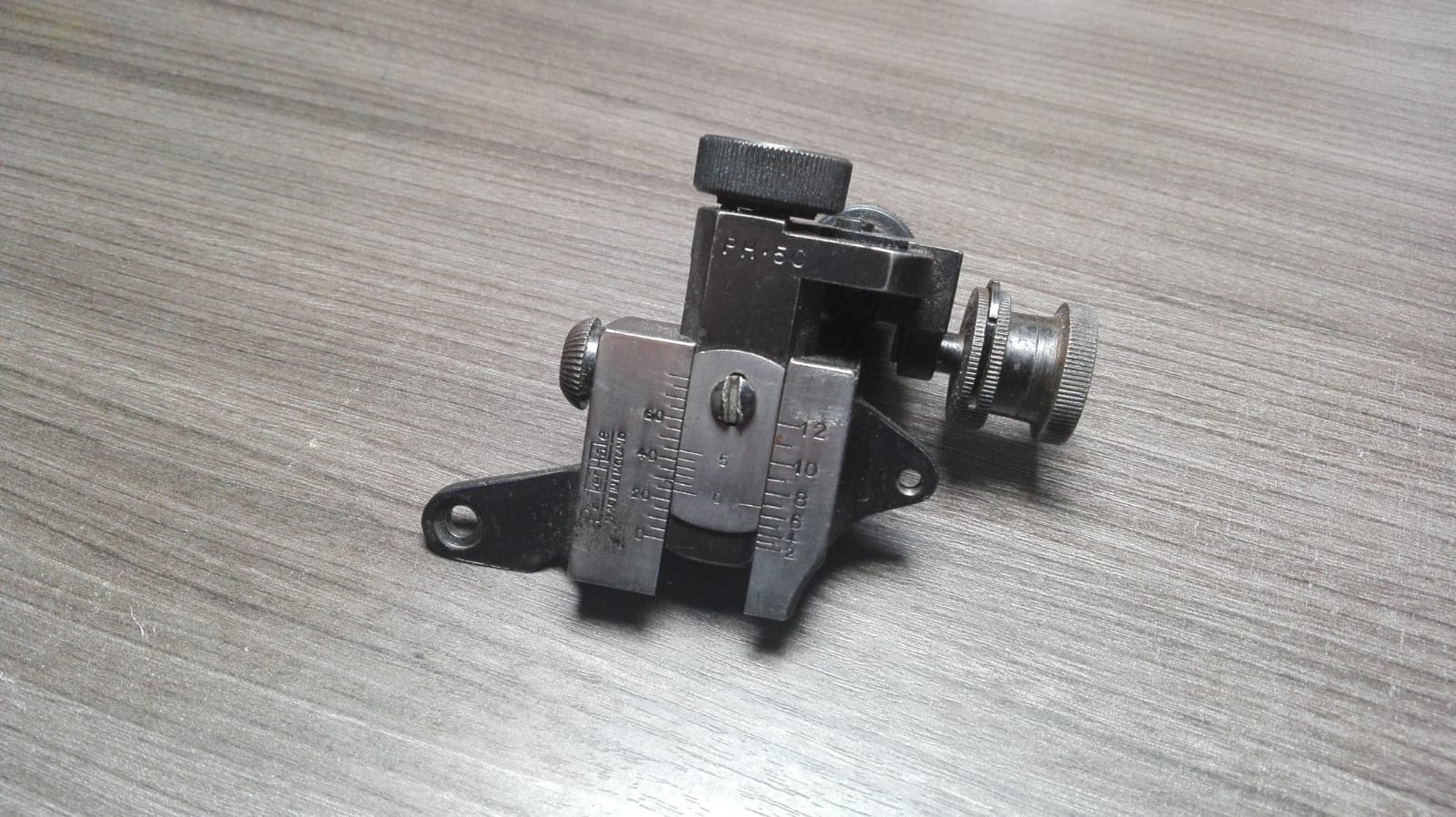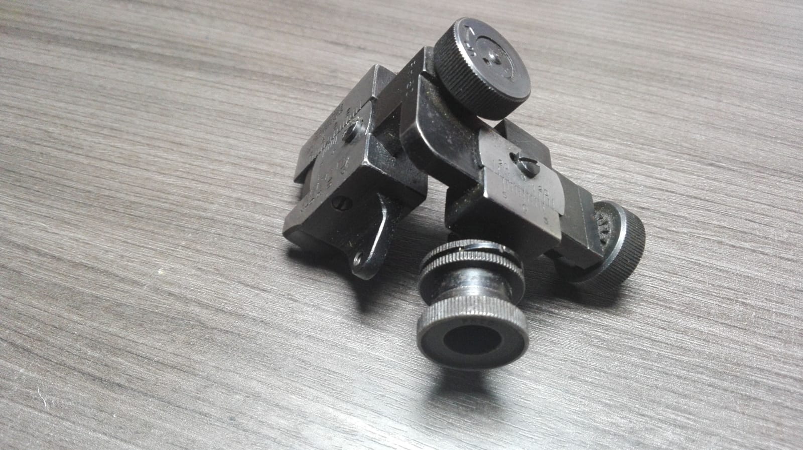 Diopter micrométrico de iris regulable para fusiles Enfield Nº4. El estado de conservación y funcionamiento es PERFECTO, y no tiene holguras ni golpes. Le proporciona una precisión espectacular al fusil. Se trata de un diopter dificil de encontrar, y mas este que esta en perfecto estado.