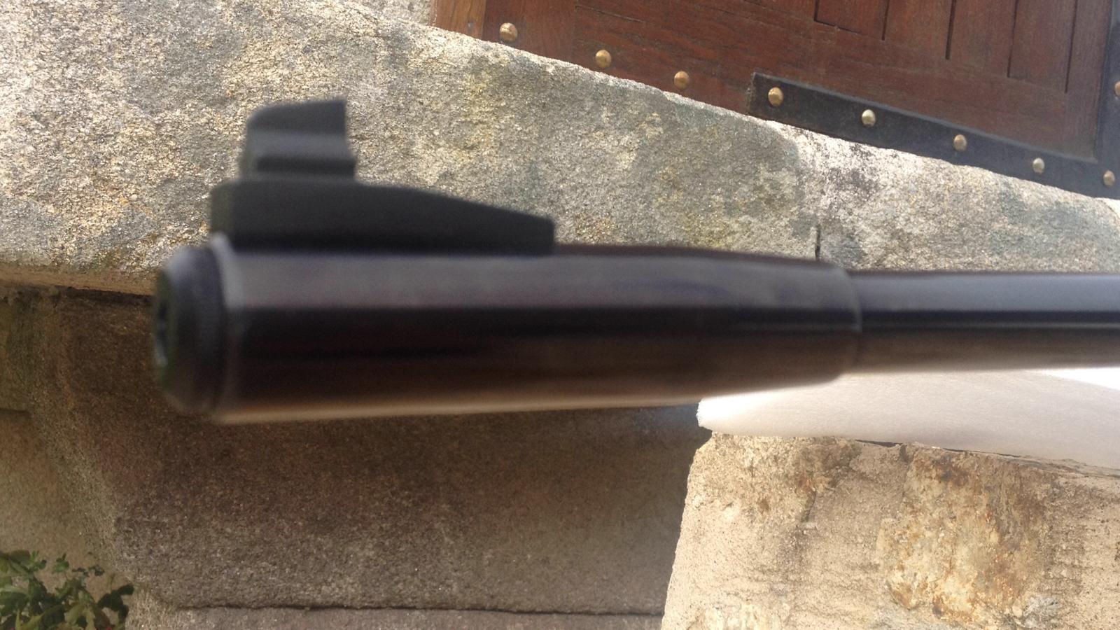 Ni una marca. No se.ha.usado practicamente. Se le.nota en todo. Madera, pavón reluciente y azulado, brillo, dureza de carga...