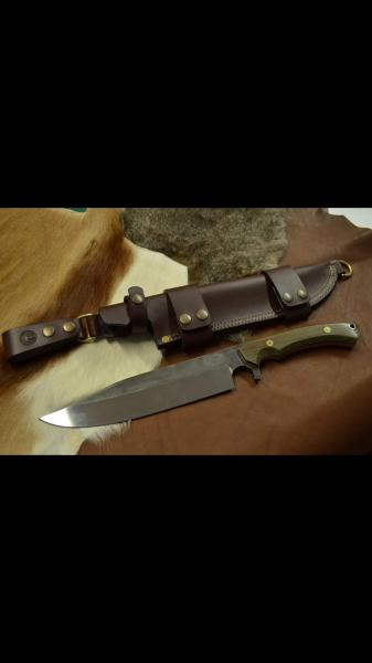 Se vende cuchillo artesanal de Alberto castro realizado en acero A2 con tratamiento criogenico tiene unas medidas de 22 cm de hoja y 14 de mango realizado en madera lignun vitae el grosor de la hoja es 7 mm y el vaciado es plano desde el lomo la funda esta realizada por José quercur y el precio el envío está incluido 300 euros