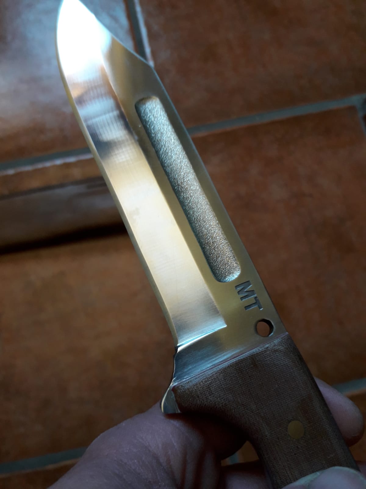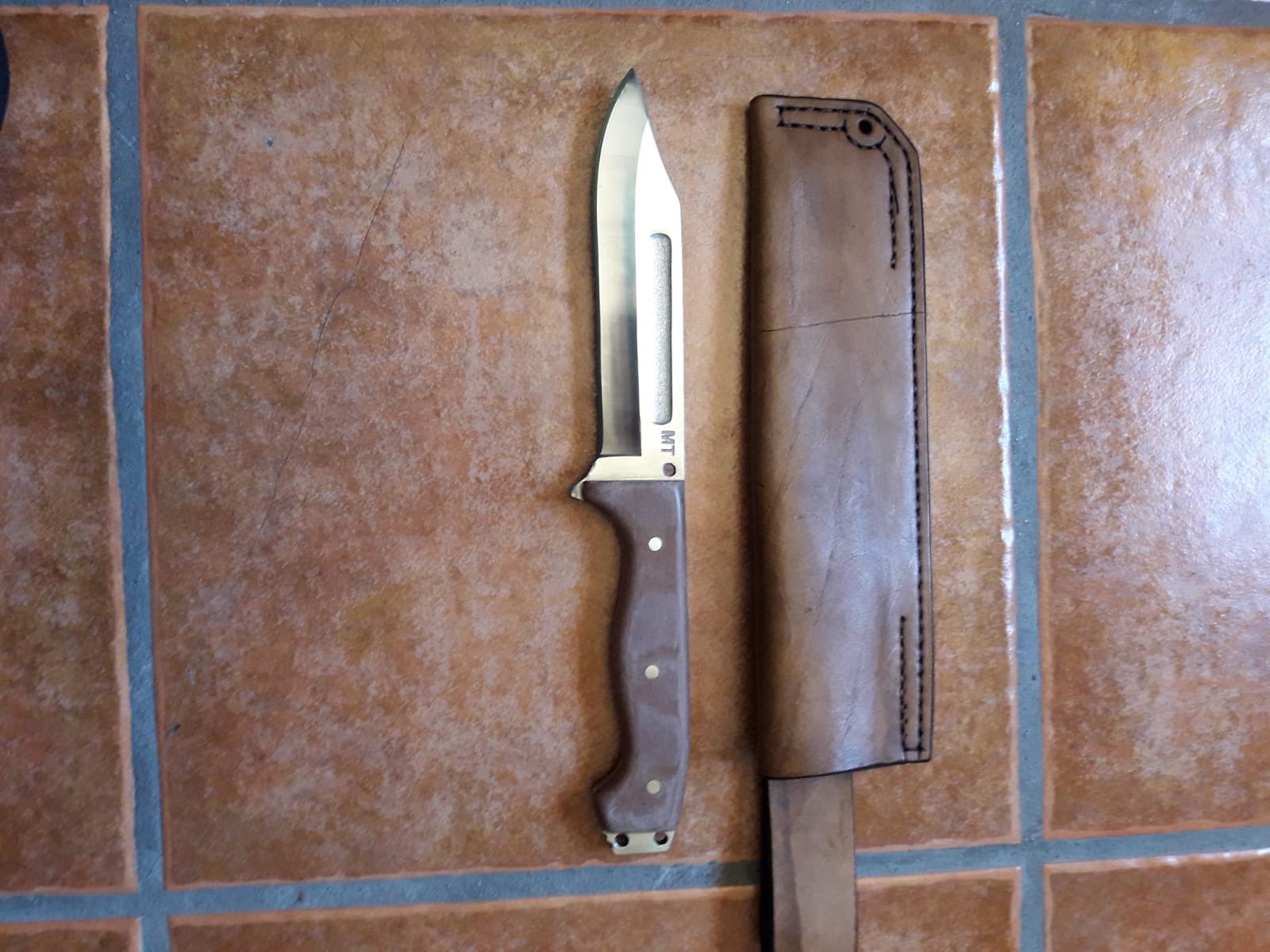 Cuchillo de combate MT Centurión, tipo "bowie" de 16 cm. de hoja con sangradera. Construcción enteriza con cachas de micarta marrón. Funda de cuero marrón. Acero MoVa. 90 euros con envío incluido a la península (NO ENVIO A CANARIAS/ CEUTA/MELILLA).