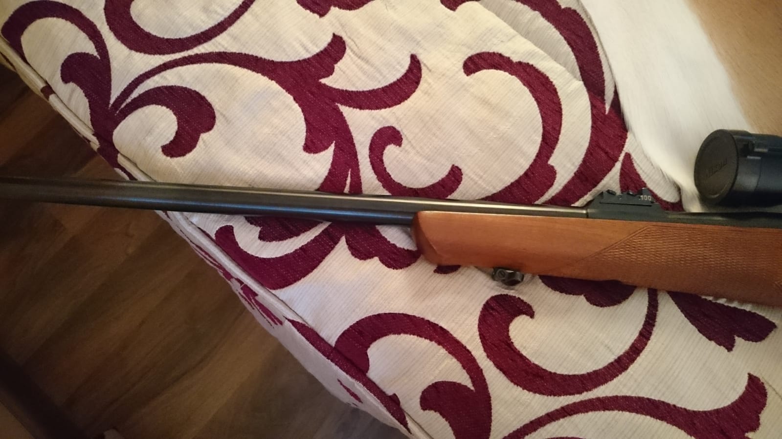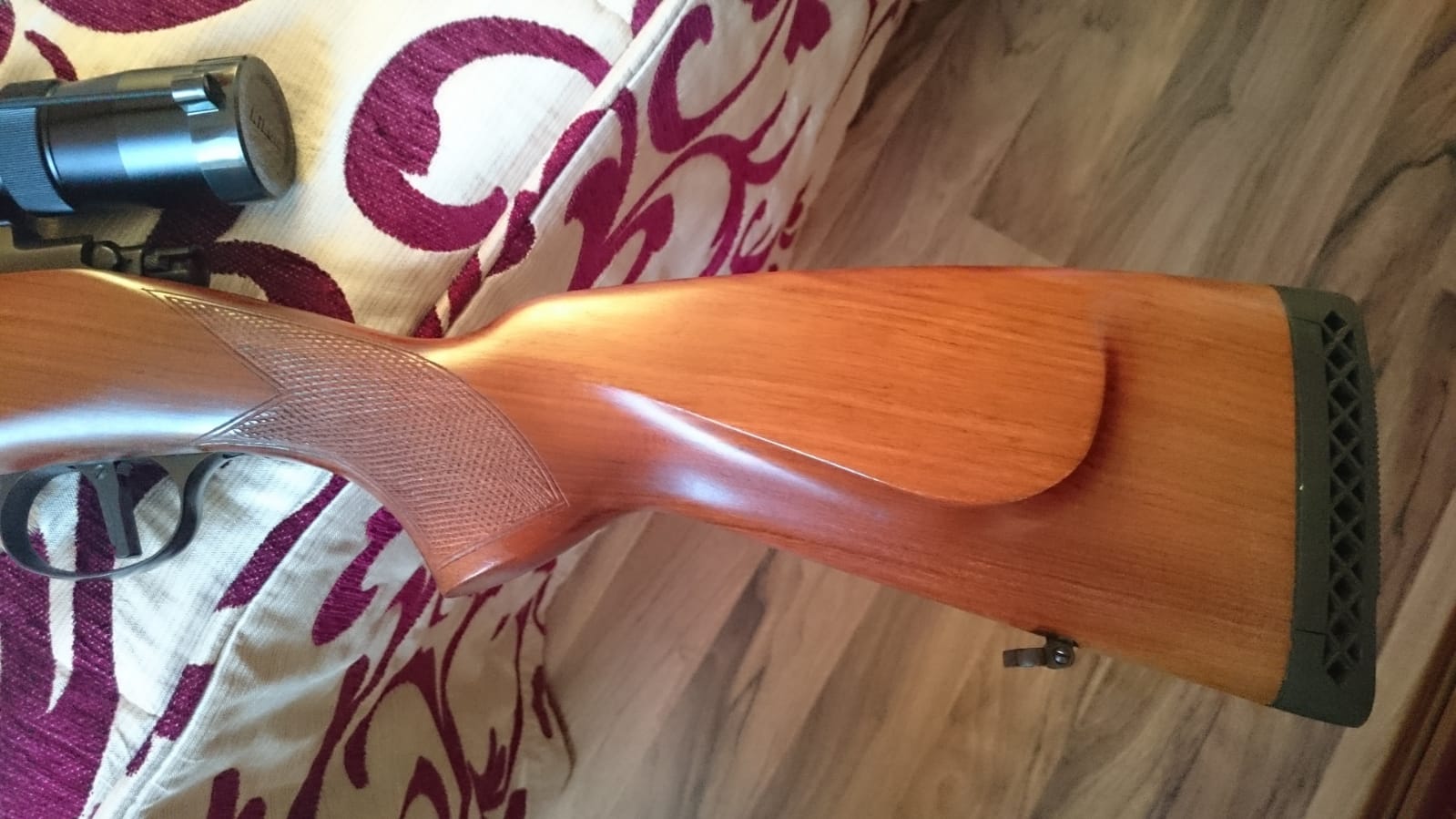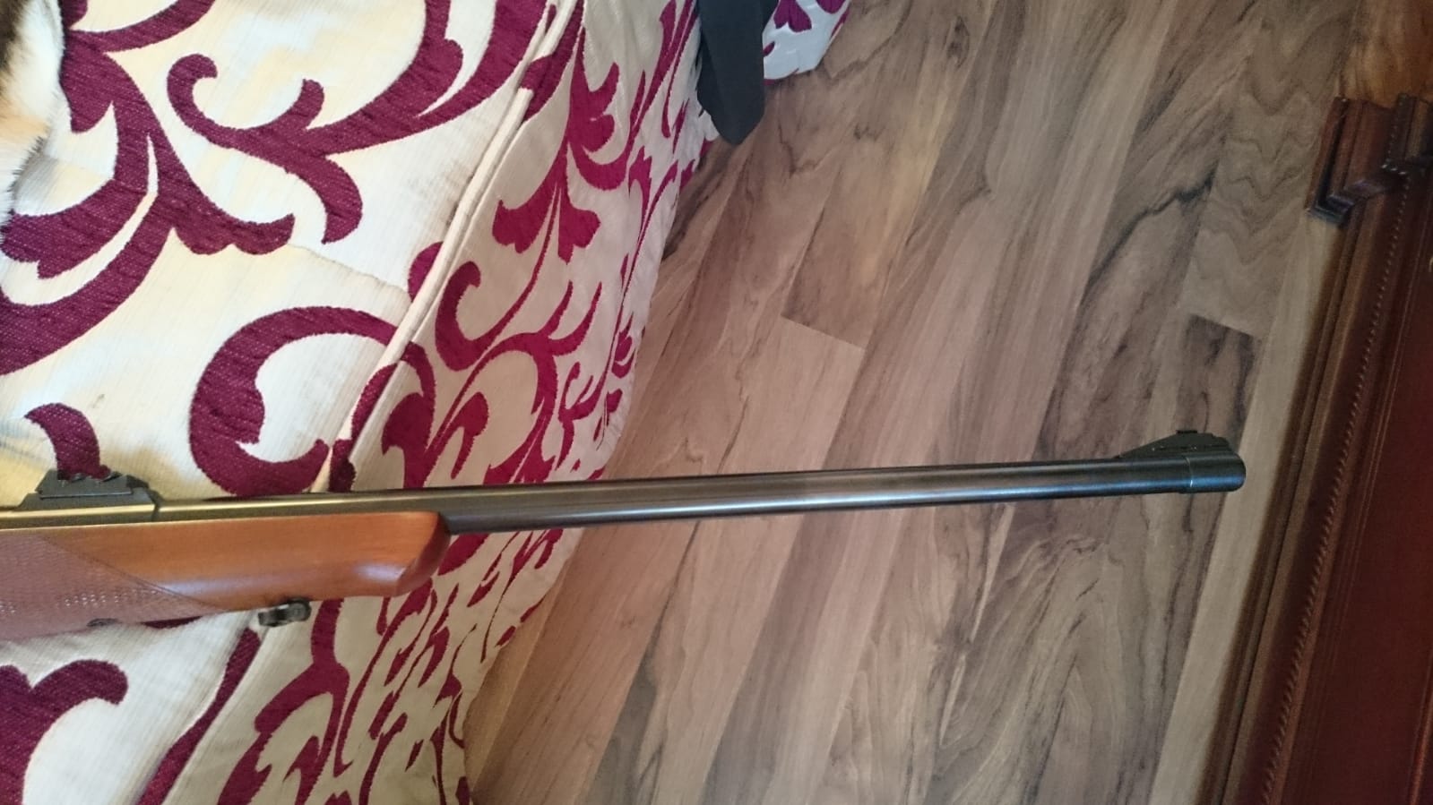 El cambio de color que aparece en el cañon es que al colocarlo en el armero despues de aceitarlo la esponja ha tragado el aceite del cañón.