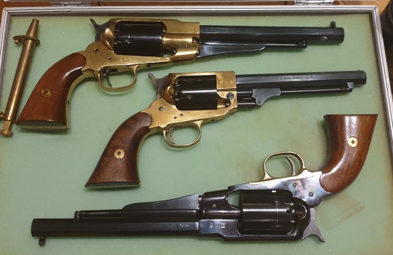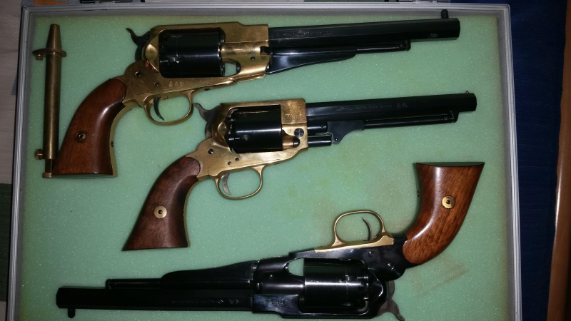 y el otro un Remington 1858 con pocos tiros. el otro revolver es un spiller burt del calibre 36 nunca disparado vendería los 3 por 600 euros gastos de envió a parte.Si se vendiera por separado el precio serian estos:
