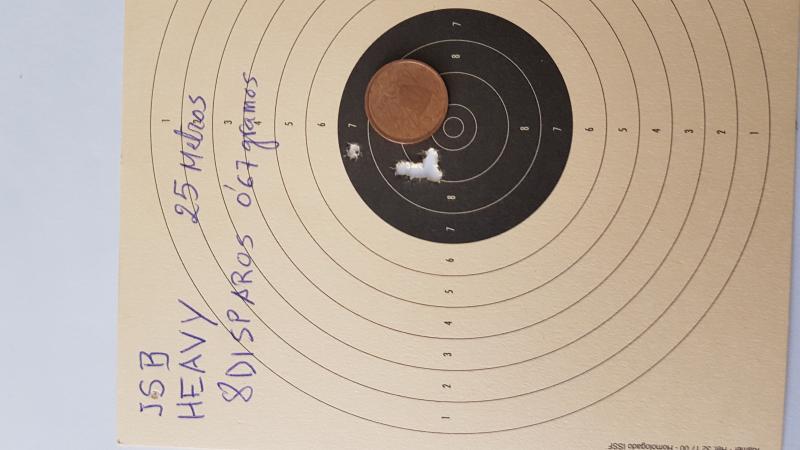 a 50 metros el heavy sigue siendo el mejor, el tiro de 6 arriba era una prueba para ver la caída del balín, y a excepción del 10, los otros 6 están muy bien para hacerse con una carabina con culata universal, de cañón abatible y totalmente de serie.