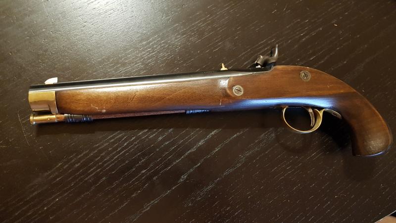 la compre por poner con el Hawken y el Kentuchy en el armero pero no tengo ya sitio. Es de Gil y marca calibre 44... no tire nunca con ella. El que me la vendio me dijo lo mismo que no se había usado.