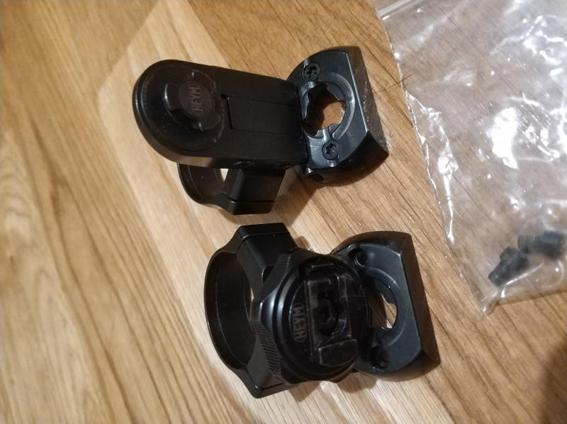 Originales Heym y válidas para sr21/sr30 pero el modelo antiguo, el que tenía la base trasera tallada en el puente. Las vendo precisamente porque las compré de segunda mano y mi modelo de rifle es nuevo. El armero me dijo que imposible darles uso. Están en fantástico estado excepto algún tornillo de las anillas que tiene la cabeza un poco pasada. Por lo demás ni un arañazo. Incluyo dos bases delanteras originales. Están en Madrid por si alguien las quiere ver.