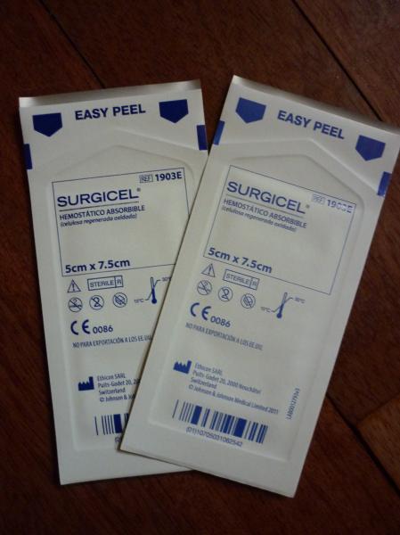 -2 hemostaticos en aposito de 7,5 x 2 cm, Surgicel, con caducidad en octubre de 2023