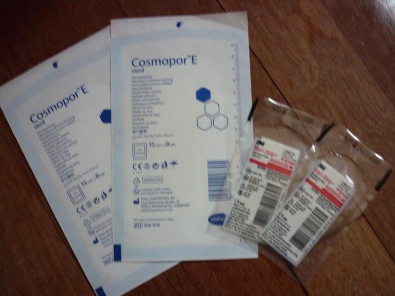Estos 2 ultimos apositos podrian utilizarse como parche oclusivo de fortuna, al tener reborde adhesivo y por el material del que estan fabricados no permiten el paso de aire.