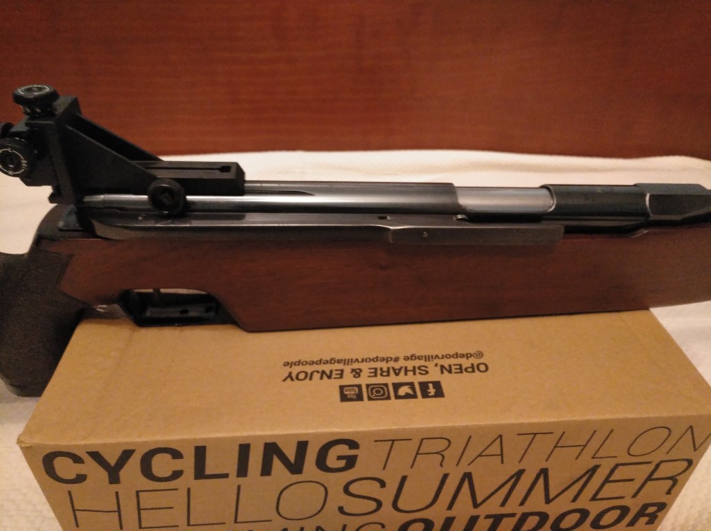 vendo carabina Feinwerkbau 300 S, esta carabina se encuentra en un estado general bastante bueno, pero tiene claros signos de uso tanto en la acción como en la culata, el pavonado en la parte de la palanca de carga y cerca del puerto de carga presenta algunos puntos de oxido y algo de desgaste, el cañón propiamente dicho es negro y brillante, en la parte de abajo presenta desgaste de pavonado.