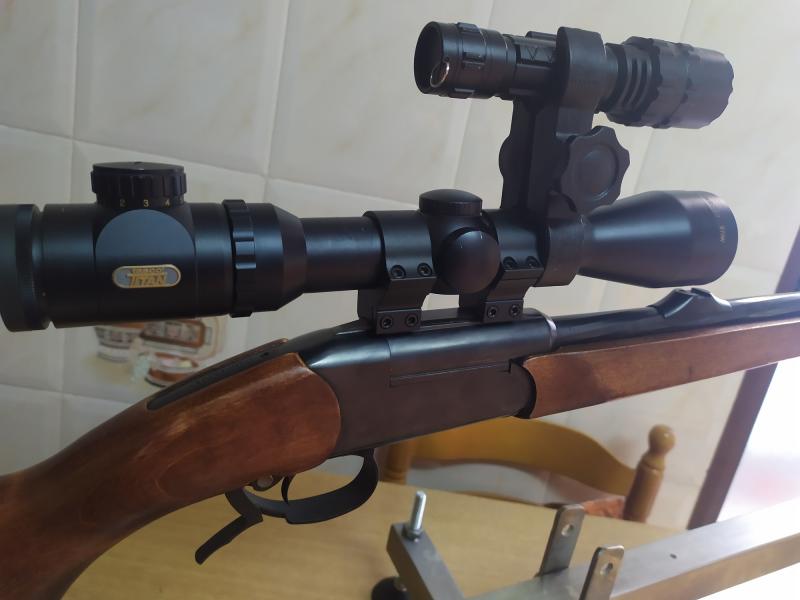 buenas compañeros, vendo rifle Baikal, monotiro, de calibre 30 06, especial para aguardos, es ligero para ir por el monte, se vende con visor titan tasco con punto rojo de diversas dimensiones dependiendo de la oscuridad o distancia, acople para linterna y linterna luz verde( el haz de luz llega mas de 150 metros, la linterna va con cable usb para cargarla), la mira del rifle esta preparada para disparar de 70 a 100 metros, pero se puede poner a la distancia de cada uno. cada tiro al jabali, con la norma point plastic de 180, caen insofacto, tiene esta bala un poder de parada impresionante, siempre pegandole en la paletilla o en la cabeza. ha matado muchos jabalies, ahora ya no hago puestos y me deshago de el. su precio es para que no lo penseis. 375€ con todos los accesorios del rifle, donde esta apoyado no entra.