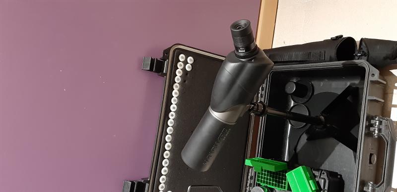 Maletin+caja munición PeliCasi+visor Vanguard 15-45x60 ideal caza y tiro con trípode y funda, 2 cajas para 32 wd y una gorra de neopreno NUEVA + peso de 1kg