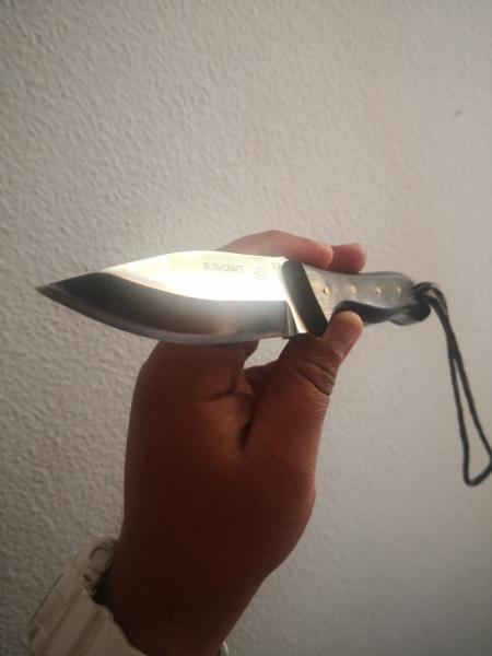 Cuchillo modelo bushcraft en acero d2 y madera de ébano cuchillo realizado por el artesano toledano José moreno el cuchillo no se ha usado en su funda original con las iniciales grabadas su precio 180 envío incluido