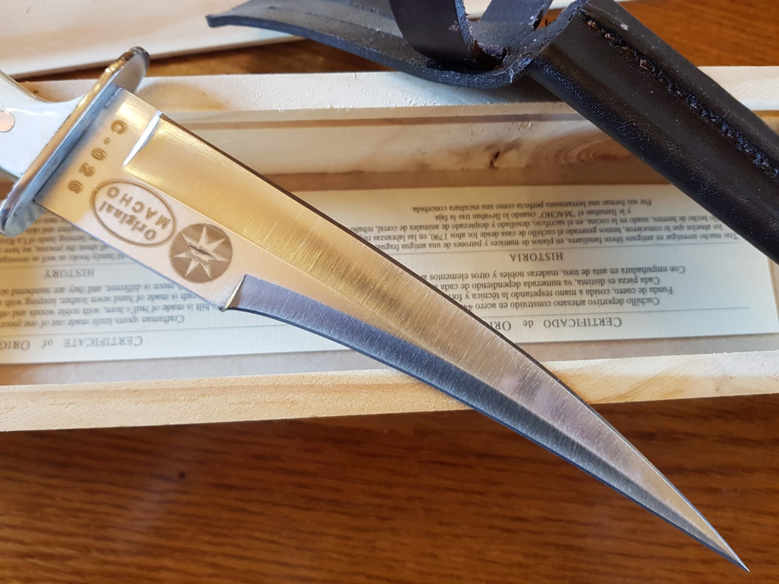 En resumen, si hubiese que defenderse con un cuchillo, mucho mejor un macho que un bowie, con frecuencia demasiado pesados ya para mi gusto, y con la hoja demasiado ancha... es mi opinión.