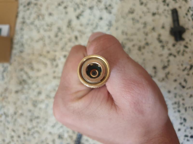 Buenas compañeros hoy me ha llegado mi bomba y tenia pensado estrenar la carabina HW100 monto la bomba le pongo el filtro (el cual voy a cambiar estoy esperado que me venga uno qie es mucho mas grande que ya me recomendasteis) y a la hora de ponerle la espiga de llenado a la bomba veo que no le entra asique necesito un adaptador pero no tengo ni idea de donde se consigue ni como se llama a ver si me podeis echar una mano estoy medio deprimido XD pongo fotos de de lo que digo tanto de la espiga de llenado como de la parte de la bomba donde tendria que ir la espiga esta es la espiga de llenado de mi HW100