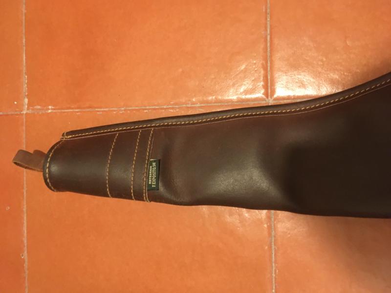 Funda de cuero de calidad para rifle con visor, con borreguillo interior, artesanía F. Exposito. Ha salido muy poco al monte, presenta marcas inevitables propias del cuero. Portes en caso de envÍo a cargo del comprador. Abstenerse ofertas ridÍculas. Precio 85 Euros.