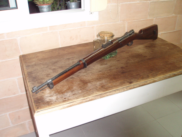 Réplica Mosquetón Mauser Oviedo mod.1916.TOTALMENTE INERTE,sin partes móviles a excepción del alza.Totalmente realizado en madera y resina. Destinado a la recreación histórica Guerra civil Española, adorno o coleccionismo. Peso 1, 2 kg. (muy ligero para hacer marchas) medidas reales. Se incorpora correa de cuero negro ó marrón., que aun no aparece en la foto.