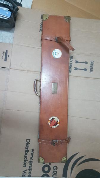 magnifico maletin de cuero para rifle asemiautomatico o monotiro, tambien podria valer para escopeta, sin roturas ni descosidos, cerradura sin llave no me interesan cambios,