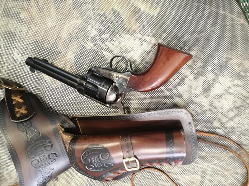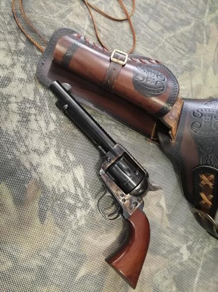 Más conocido como el pacificador, apenas se ha usado en seis ocasiones, es guíable tanto con la licencia F como con la licencia de coleccionista ,pose ambos certificados , incorpora canana hecha a medida de cuero muy decorada , CALIBRE 44-40 . Se cambia por visor o rifle de mi interés y similar estado y valor de nuevo que mi pistola.CAMBIADO SE RUEGA CERRAR