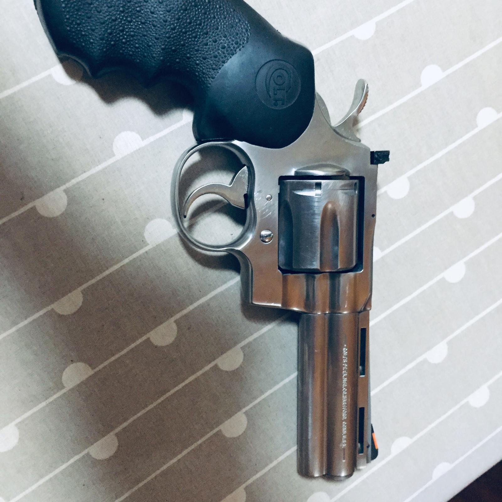 Cambio Colt python 5 pulgadas en acero inoxidable muy buen cuidada en su caja, la cambio por colt 1911 9mm.