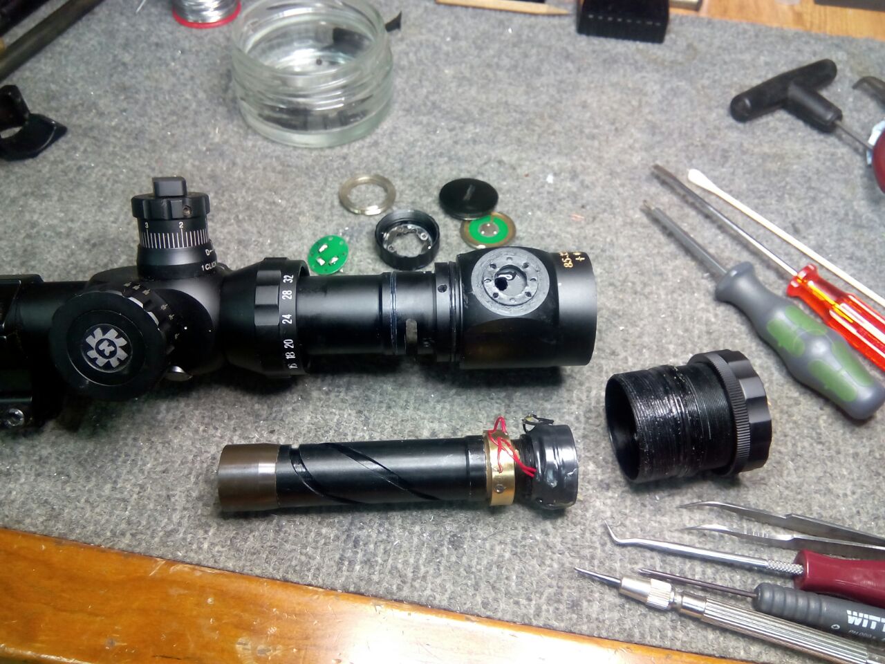 Compañero tiene arreglo y lo puedes volver a usar en cualquier carabina que no supere los 16 julios. yo lo tenia montado en mi HW97 y casi pierdo un campeonato de Hunting se rompió cuando faltaban 2 calles, se puso todo turbio se inclino la cruceta y se veían como pedacitos de viruta de aluminio, me lo reparo Nicolás Xaloc, si no lo conoces te paso el numero de telefono, lo unico que me aviso que al desmontar no volvería a funcionar la luz. LLeva mas de 4 años montado en una TX 200 con 15 julios y va de lujo.