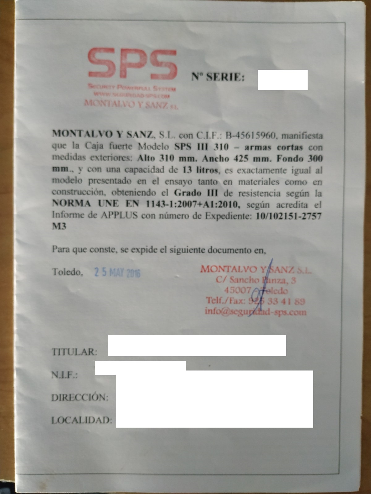 Re: ARMERO SPS 15 L. GRADO III NORMA UNE 1143-1:2010
