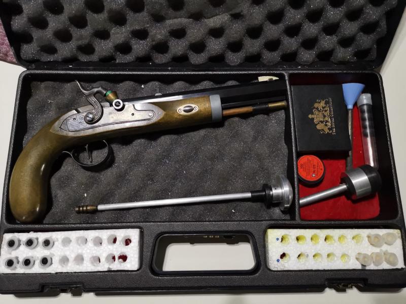 Hola. La pistola es el modelo "Mountain" de CVA, es decir fabricada por Dikar. Se vendió mucho en Estados Unidos a partir de mediados de los setenta, sobre todo en calibre 50, y como compañera, para los tramperos, del rifle Mountain. Suerte con la venta. Saludos cordiales.