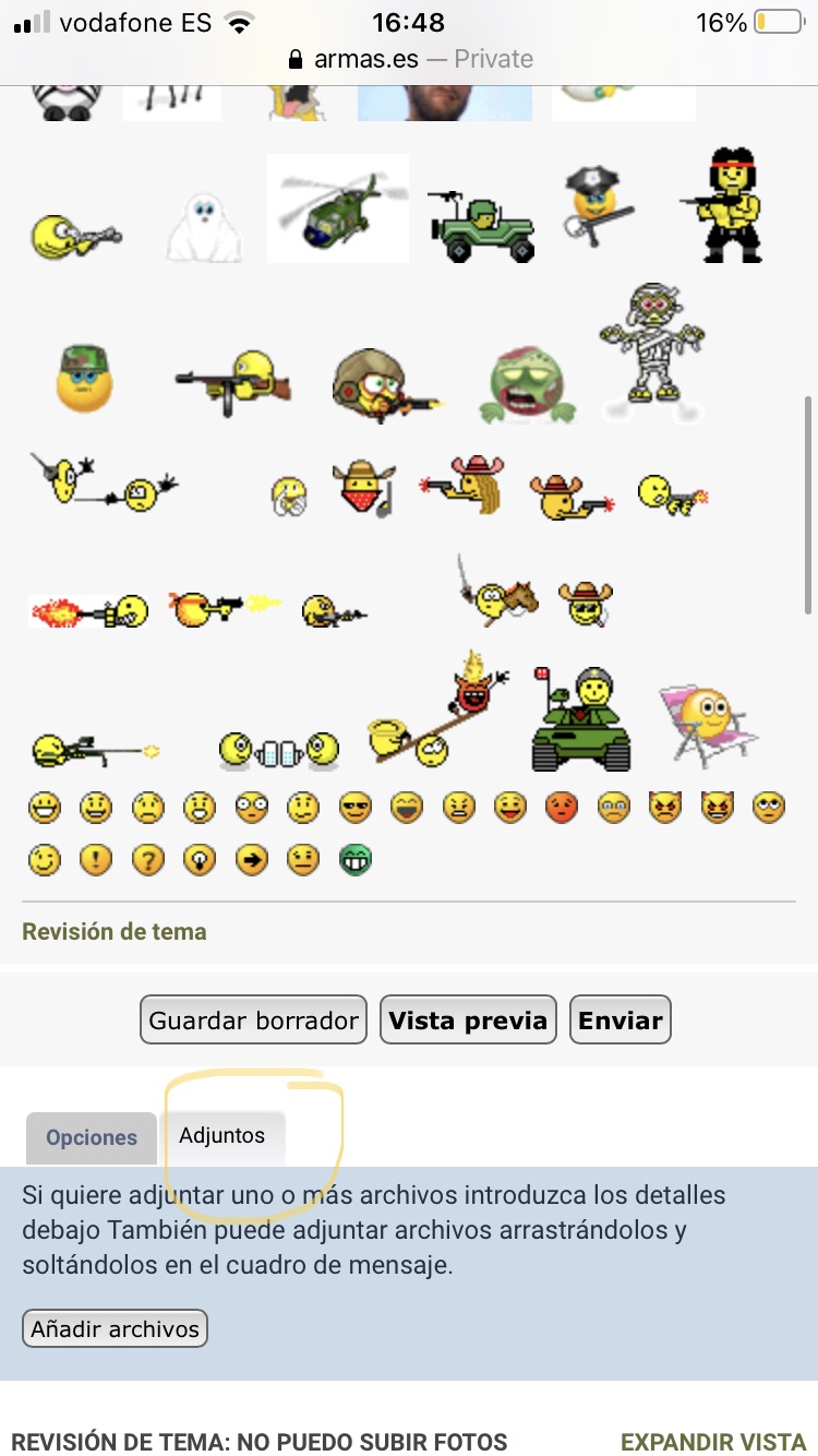 Teodoro56 escribió:A mi me pasa lo mismo en la tablet no me sale la pestaña de adjuntar con lo cual no puedo subir fotos y por lo tanto no puedo poner el anuncio de venta. Solo me sale la pestaña de opciones