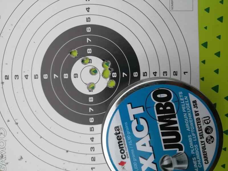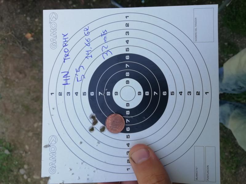 sejos escribió:berto 169 escribió:muy buenas dianas, felicidades. En la mia utilizo el JSB RS de 0,87 gramos, es el mas ligero de la gama jsb en 5,5 y me agrupa muy bien, dando unos 235 metros segundo aprox.