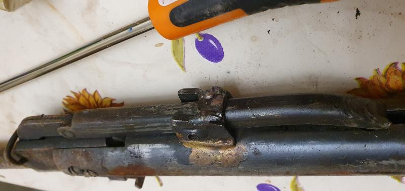 Pongo fotos...y deciros que la encontré de casualidad, creyendo que era otra cosa, al desarmarla vi que estaba soldada y no podia quitar la palanca de carga, al igual que la varilla del gatillo, creo que por desgaste, tiene un añadido de soldadura, y tambien me gustaria encontrar repuesto, si lo hubiera.