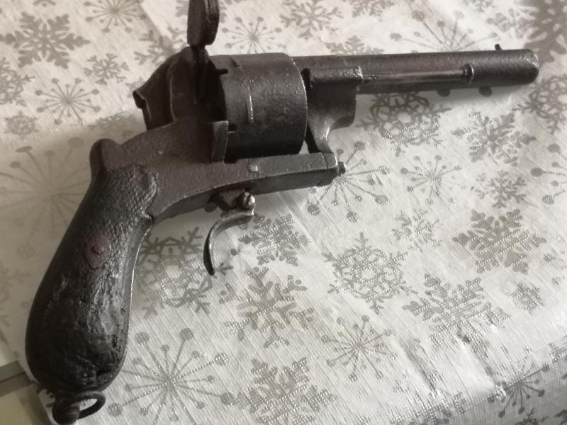 No es nada raro. Es un revolver de cartuchos Lefaucheux o de espiga.