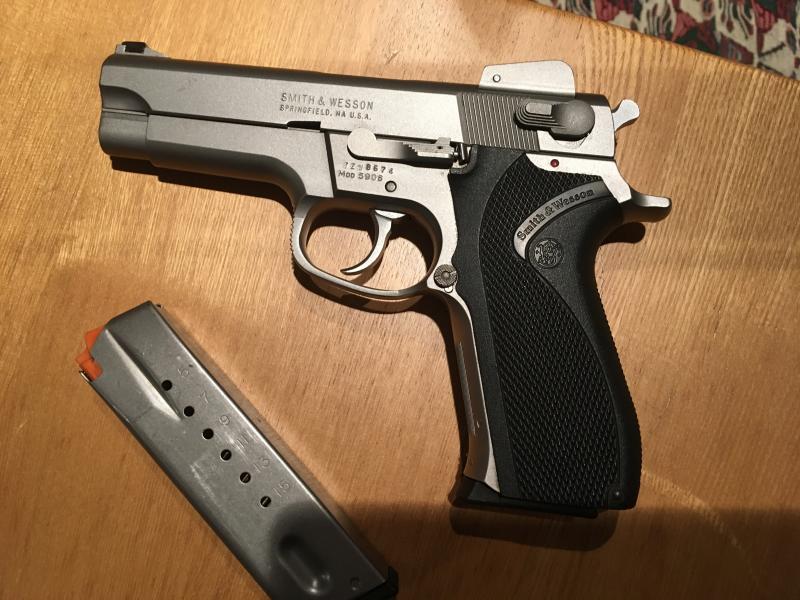 En venta SW5906;prácticamente nueva con dos cargadores y manual instrucciones.En acero inoxidable,arma con unos ajustes muy buenos.Esta en Barcelona para ver y probar,su precio 260 más los portes.