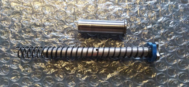 El armazón y piezas interiores son SVI INFINITY, la corredera CASPIAN y monta un cañón pesado con rampa de la casa SCHUEMANN ULTIMATCH.