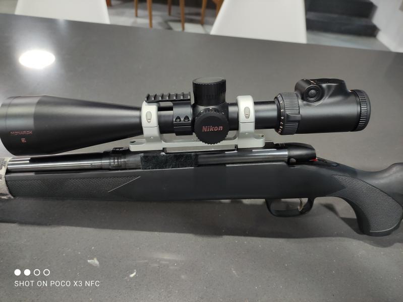 Hola. Pongo a la venta Visor Nikon Monarch 7 3-12x56. Tiene retícula iluminada con un punto rojo. La retícula se activa pulsando en uno de los dos botones +/- y de apaga pulsándolos simultáneamente. Con sistema de apagado automático. Se desconecta después de dos horas sin actividad en los botones. Se encuentra en perfecto estado. Podría incluir las monturas. Son de la marca DNZ modelo Game Reaper. Todo en una pieza base+anillas. Está montado en un Marlin XL7 30.06 por lo que sirven también para el winchester 70 de acción larga. El rifle no tengo intención de venderlo pero si alguien está interesado en el conjunto, es cuestión de valorarlo.