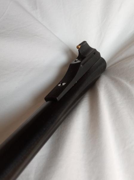 El alza entera de acero no tiene nada que envidiar a muchos rifles y el punto en torpedo con inserto en laton es super elegante.