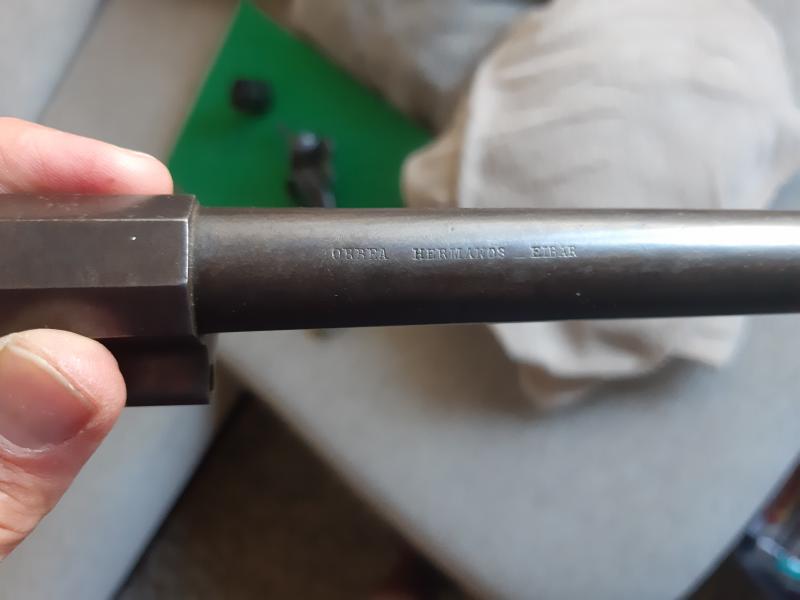 Vendo Revolver ORBEA Hermanos Eibar Modelo 1858, sistema Lefaucheux, modelo reglamentario del año 1858, longitud total del arma 320 mm, longitud del cañón 162 mm, peso 1. 000 gramos, calibre 11 .Funcionan todos los mecanismos,martillo en dos posiciones,giro de tambor,disparador,trampilla de carga.Esta guiada en libro de coleccionista de armas. 300€ más gastos de envío de intervención a intervención más tasas de guia de circulación (unos 32€). O recogida en la intervención de armas de Valladolid.
