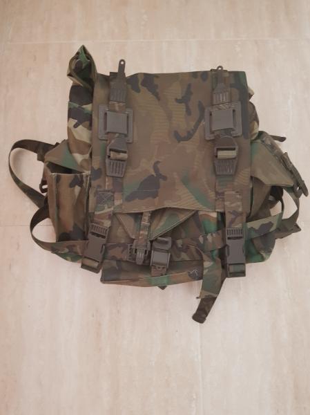 Antigua mochila de combate camuflaje boscoso. Usada. Buen estado. No tiene roturas.