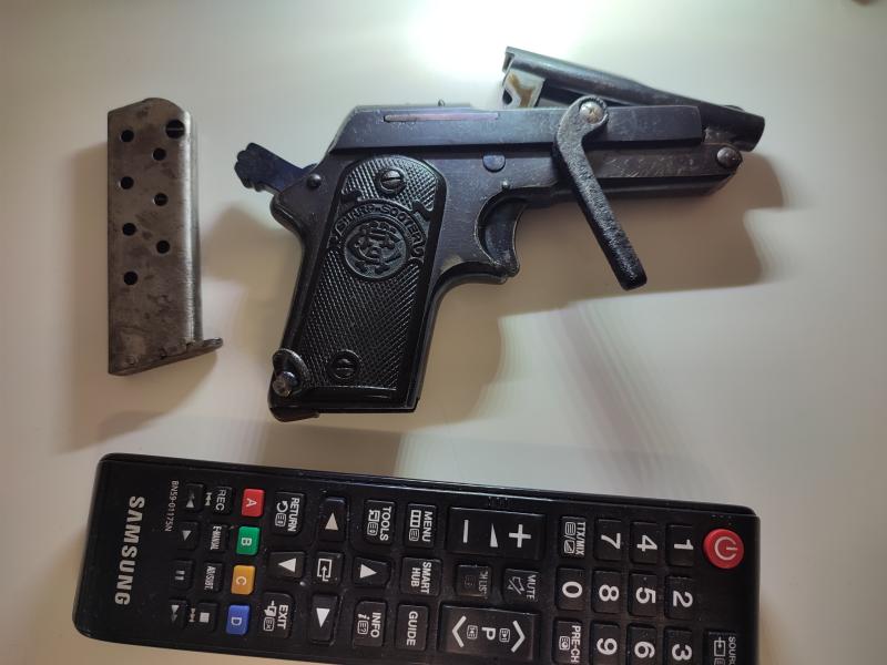Vendo pistola marca JO.LO.AR. del 6,35 mm, muy pequeña. guiada licencia A, pavonada, marcas en el metal, dispara perfectamente, única en España, conocida como "Pistola para mancos", por poderse montar con una sola mano gracias a su palanca de montaje, no tiene guardamontes y cañón basculante, fabricada entre el 1914 y el 1924. Solo entrega mediante depósito en Intervención de Armas de Guardia Civil, Policía Nacional o militares, a no ser que se cambie la guía .Envío fotos