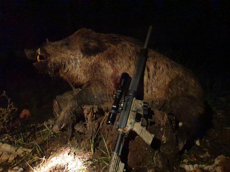 Hola, en respuesta a tu pregunta Quemabalas, te aporto mi corta experiencia en este calibre. Como ya he comentado en algún otro hilo, soy un enamorado del 300 Blackout, lo tengo tanto en cerrojo como en un AR y que utilizo, sobre todo, en rececho con muy buenos resultados y también en alguna espera. Al S&W MP15 le añadí un cañón 6.8 SPC hace unos meses. Desde ese momento he disparado 4 guarros en espera con abundante sangre desde el lugar del impacto y cobrados en un radio de 50 metros el más lejano. Tiros colocados en el codillo y distancia 80-90 metros. Como ves no son muchos lances pero la primera impresión es muy buena. La munición utilizada ha sido Remington Core Lokt Ultra 115 gr.