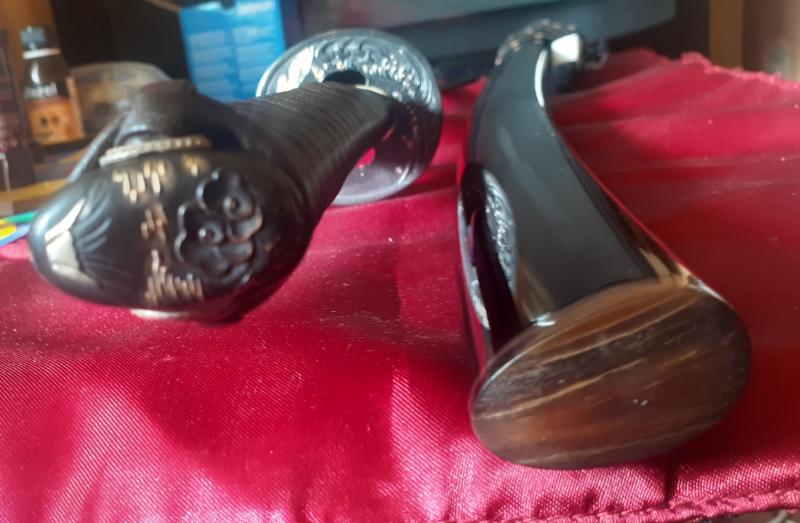 Aunque adjunto fotos de la espada, ni yo soy muy buen fotógrafo ni mi movil es de los que mejores fotos sacan, ciertamente mis fotos no le hacen justicia, por lo que aconsejo visitar el enlace a la página donde compré la katana para ver mejores fotos y consultar la ficha técnica, donde se detallan longitud, peso, etc. https://www.katanamart.eu/katanas-artes ... 03580.html