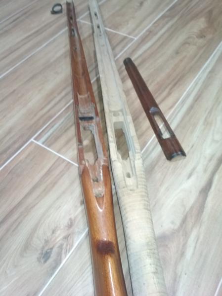 Se vende conjunto de culatas Oviedo. No se si son del modelo 1916 o 1893. Una de ellas está en basto como salían de la antigua fábrica de armas de Oviedo y la otra está ya terminada y barnizada al poliuretano, con todos los herrajes y la caña superior, únicamente le falta el anillo que sujeta la caña para colgar el portafusas. No se venden por separado. Miden unos 114 cm, se encuentran sanas, sin carcoma ni astillados. El conjunto, 170 euros.