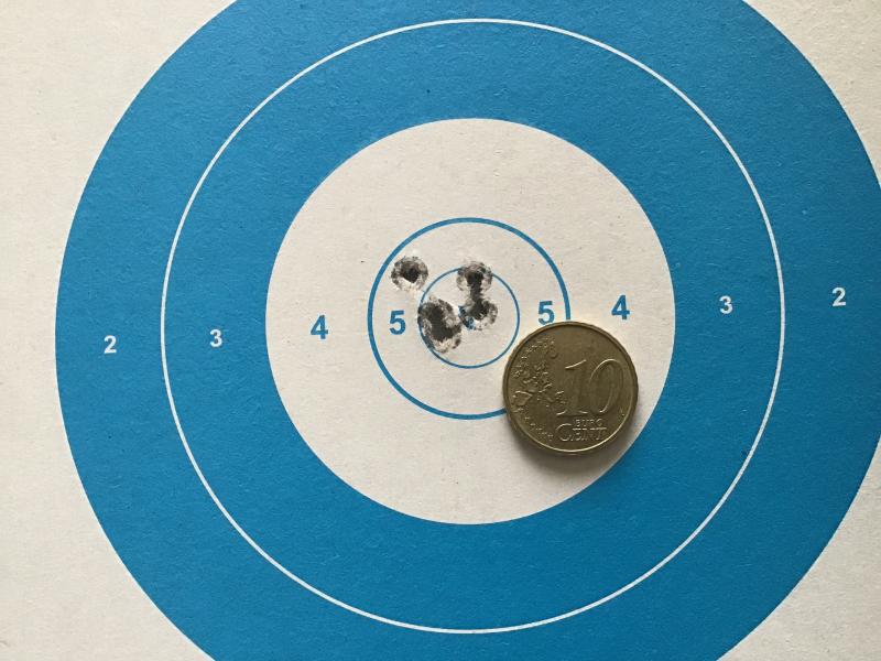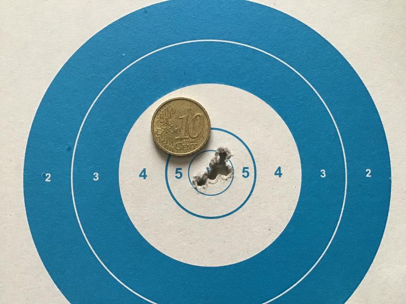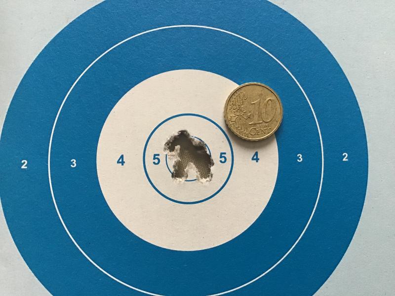 Os dejo fotos de las pruebas que he realizado a 50 metros… con apoyo del bípode Harris, sin saquete trasero. Precisión increíble tratándose de una semiautomática. A ver si tengo oportunidad de probarla a 100 metros.
