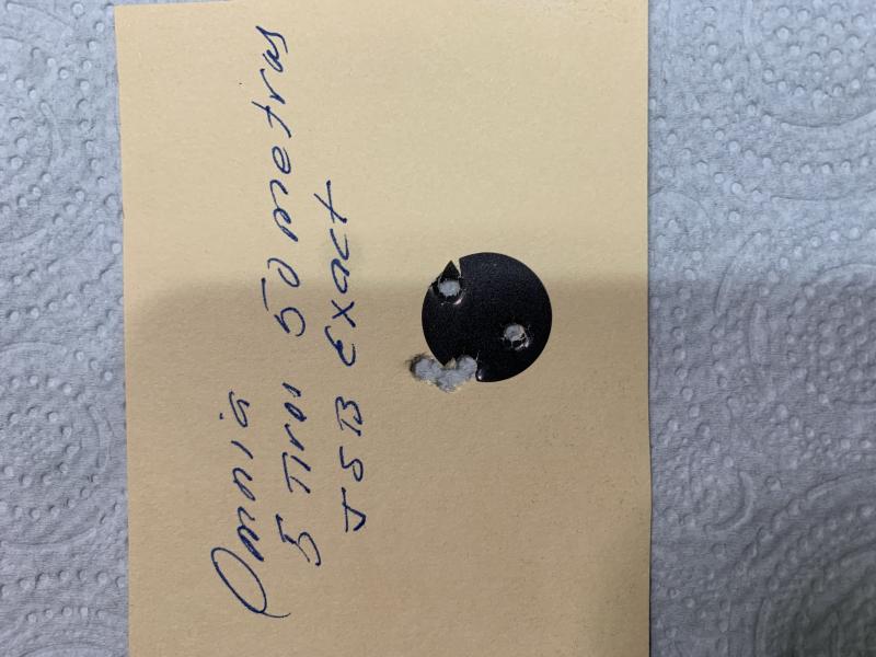 Distancia 50 metros, balines JSB Exact, que parecen los mejores con mucha diferencia entre 5/6 clases mas que he probado ( todos de calidad, JSB, NH, RWS... ).