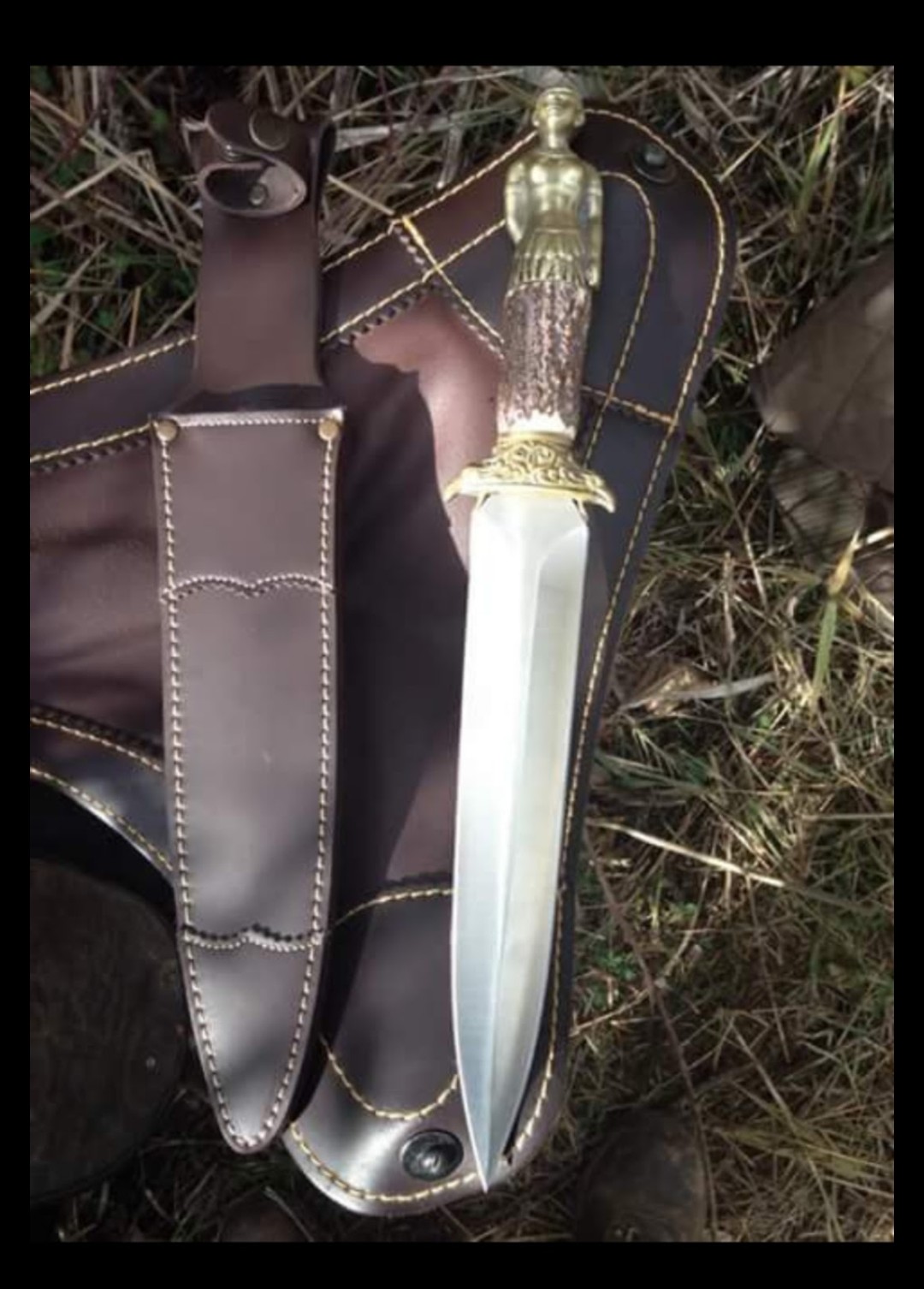 Mango en cuerno de ciervo y silueta de mujer, guarda formada por 2 águilas.